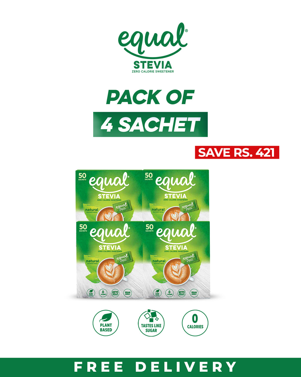 Pack of 4 Equal Stevia Sachet Box